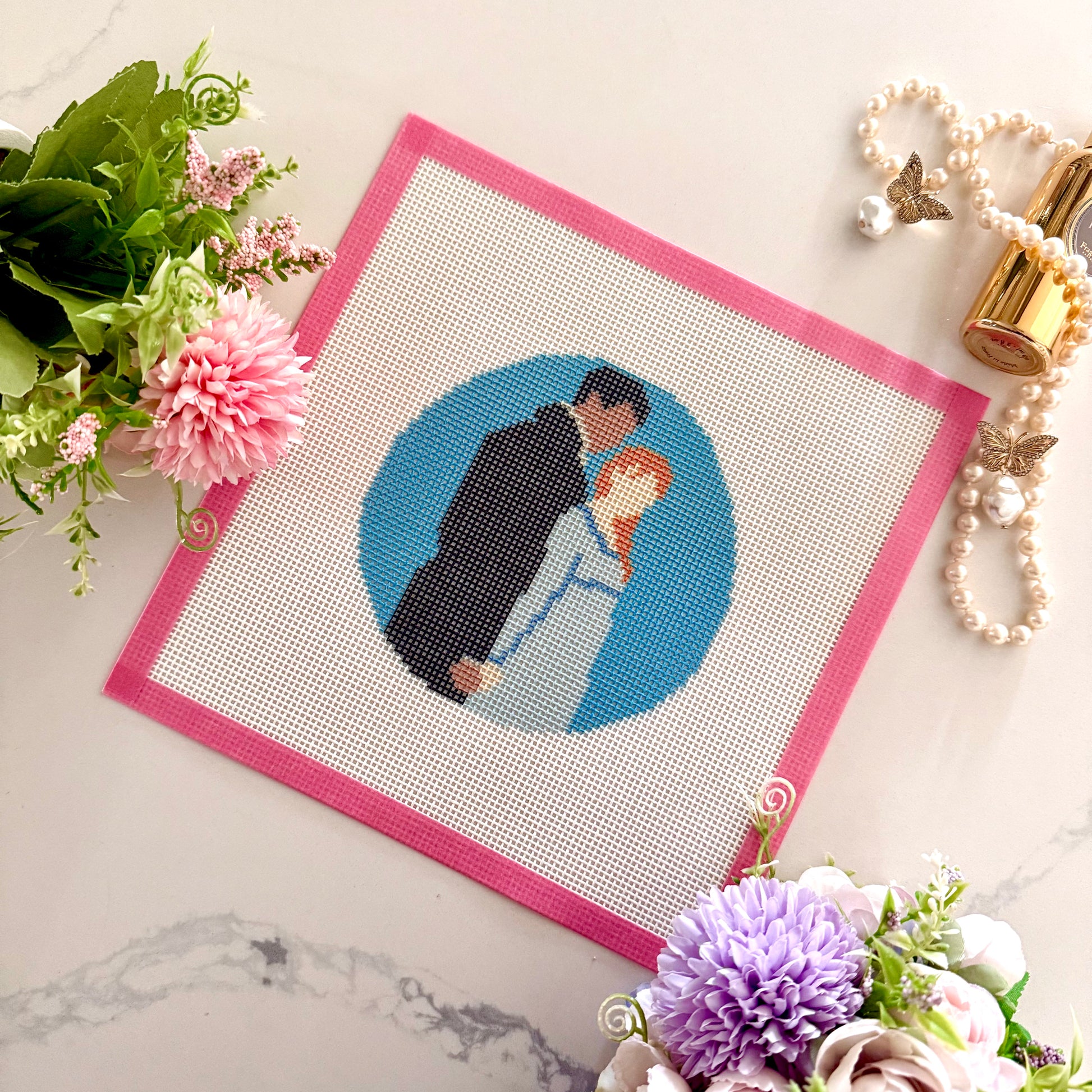 Regency couple needlepoint canvases! Our favorite couples from our favorite show along with our favorite hobby, what else could we want? Choose from your favorite duo, either from season 1, 2, 3, or from the long awaited season 4! Or if you love all of these duos, get all 6 for a reduced price. On 12 mesh, canvas measures 9.5 in tall by 9.5 in wide. Design measures 5.5 inches tall by 5.5 inches wide. Canvas is lined with masking tape. Please remember this is a printed canvas and therefore may have some imperfections, misalignments, etc.